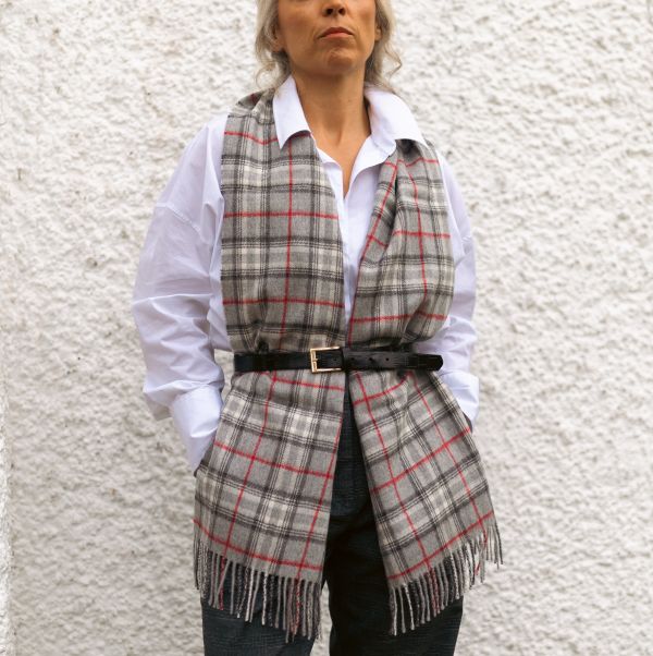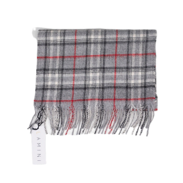 Bufanda en lana baby alpaca con diseño de cuadros escoceses y flecos en los extremos