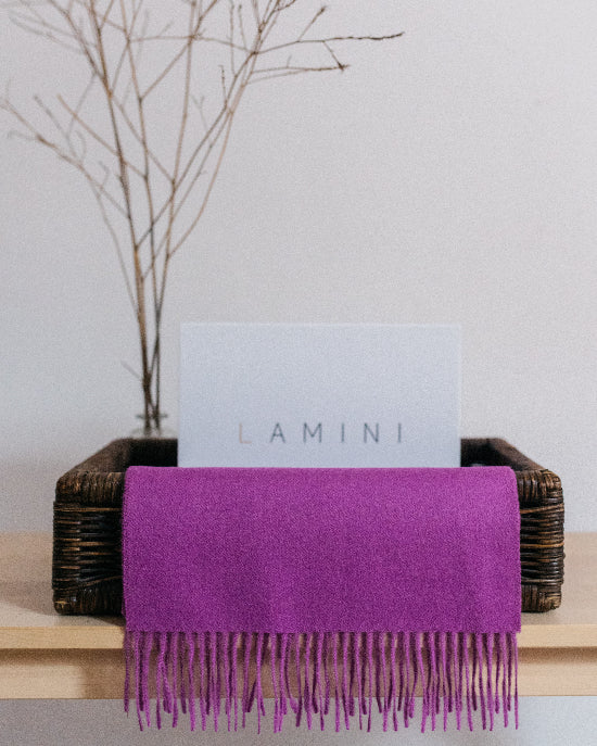 Bufanda lisa en lana baby alpaca con flecos en los extremos
