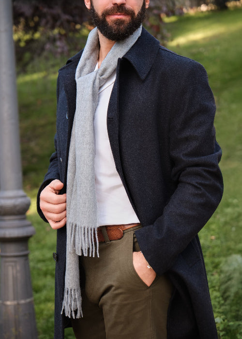 Bufanda lisa en lana baby alpaca con flecos en los extremos