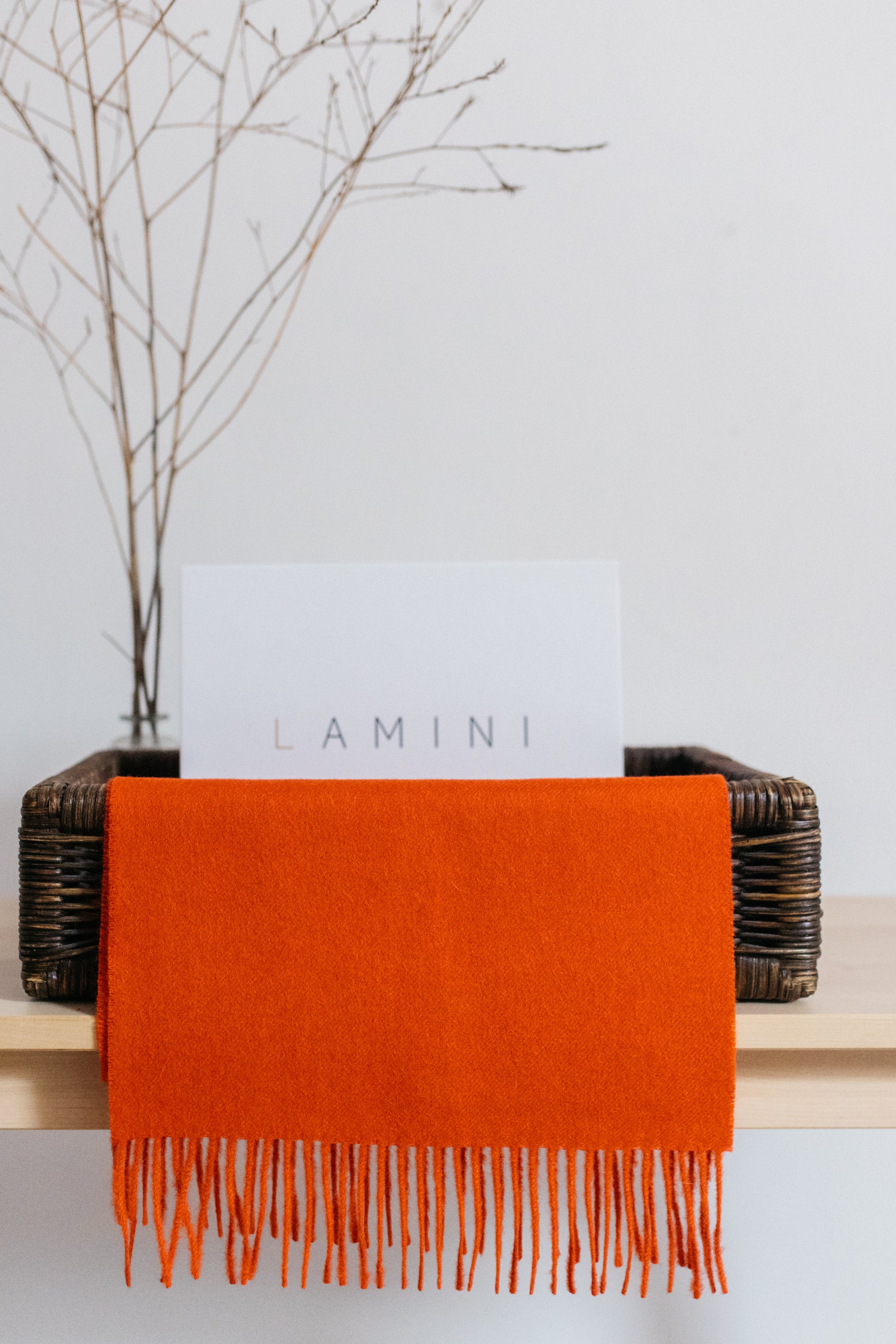 Bufanda lisa en lana baby alpaca con flecos en los extremos