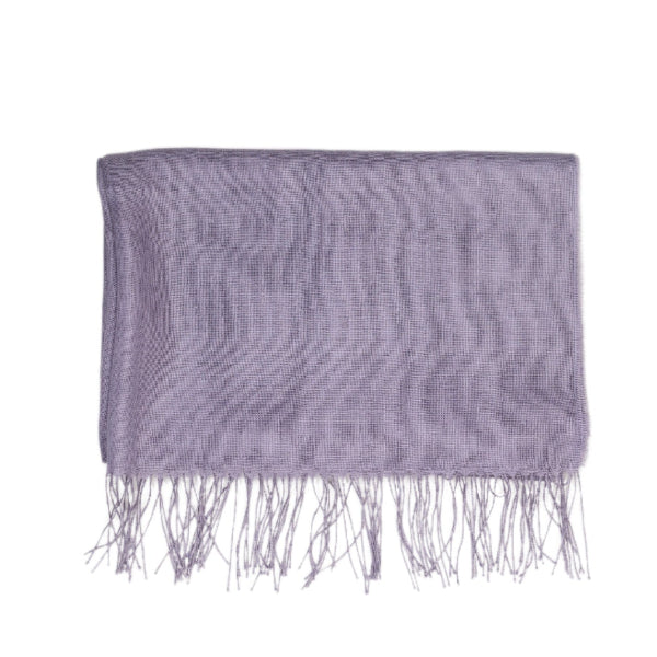 Chal rectangular en mezcla de lana de baby alpaca y seda con acabado liso y terminaciones en flecos