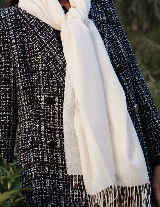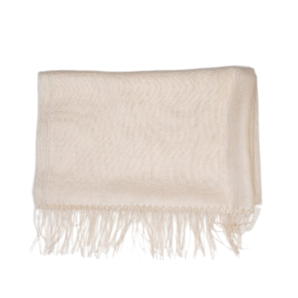 Chal rectangular en mezcla de lana de baby alpaca y seda con acabado liso y terminaciones en flecos